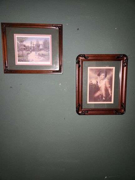 LOT 102LR - Pair of framed prints: Court Square Memories and boy w rabbit, 9" x 11" and 12.5" x 10.5"