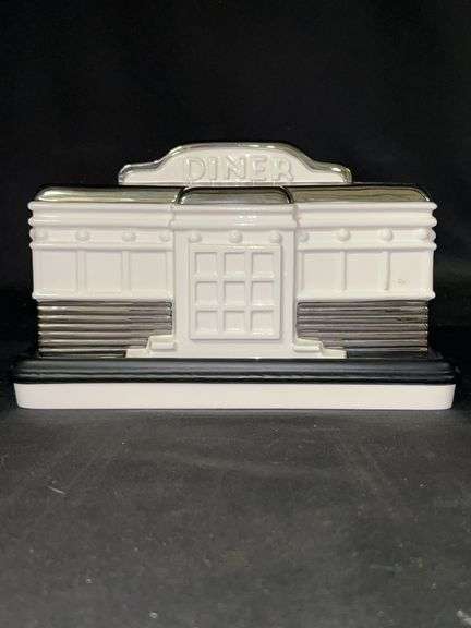 LOT 57 - Dept. 56 Diner butter dish….. vintage/retro style piece with a white and silver design that resembles a 1950s diner