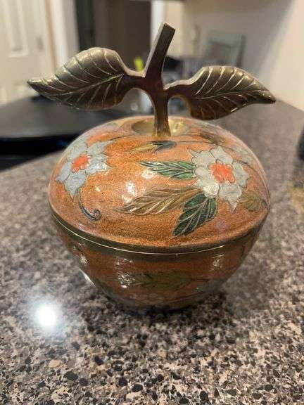 LOT 61 - Vintage Cloisonné Apple Shaped Trinket Box