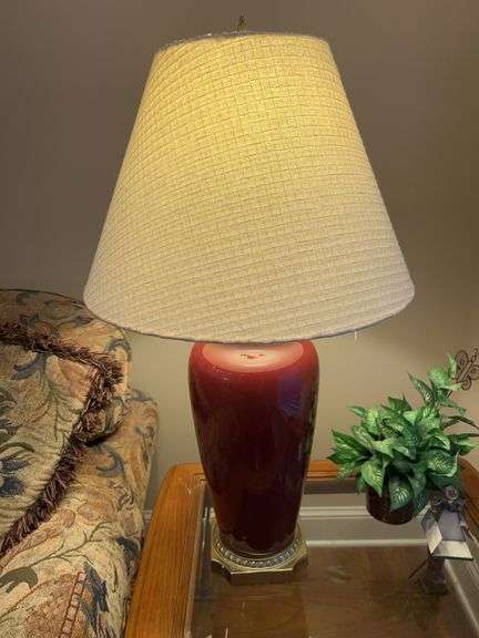 LOT 65 - Beautiful Brass and Blood Red Lamp