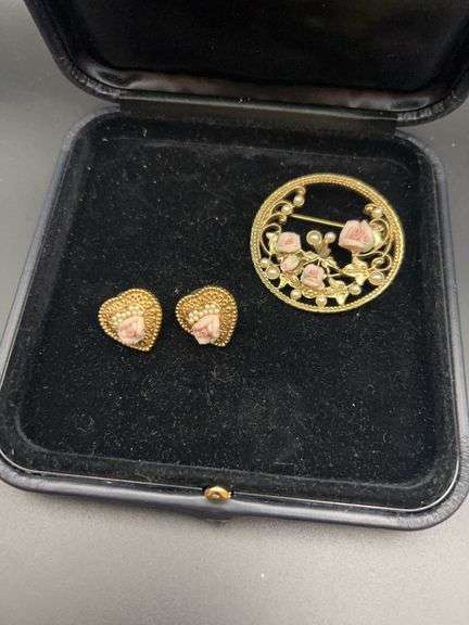 LOT 96 - Victorian-Style Filigree Pin and Earrings