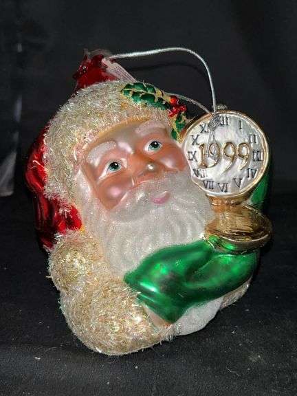 LOT 161 - NIB Dept. 56 Mercury Glass “All In Good Time” 1999 Santa Ornament…..5-3/4” tall