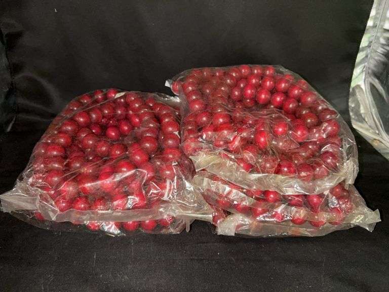 LOT 185 - Grouping of 5 bags of wooden red beaded garland…..each bag is approx. 5-6’ long