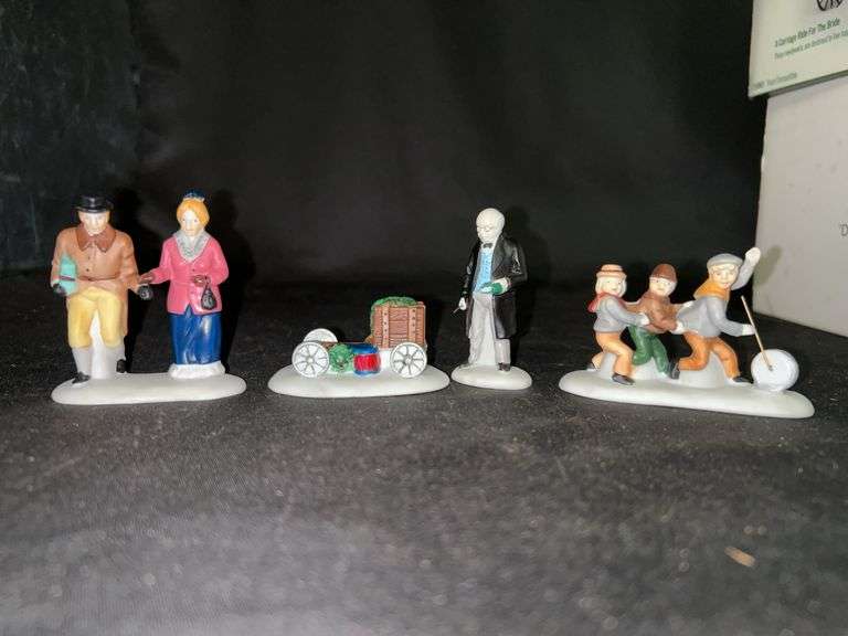 LOT 187 - Dept. 56 Heritage Village Collection Set of (4) “Nicholas Nickelby” handpainted porcelain village accessories in original box