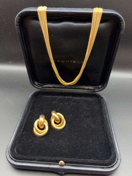 Great 14kt necklace 16” - 19” / 22.41g. Earrings are gold toned at 1”.