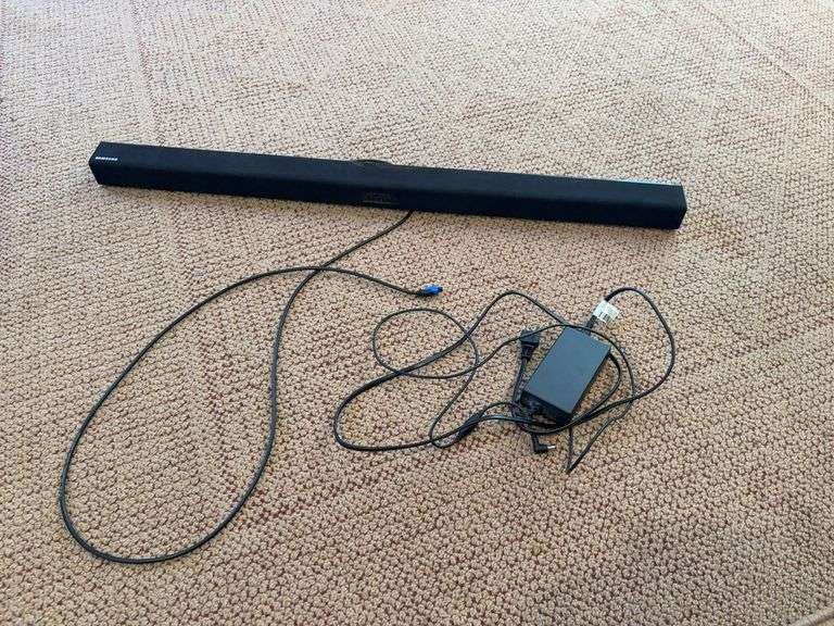 37” long Samsung HW-F355 soundbar system with 68” inch long cord. WithBluetooth connectivity, SoundShare, USB Host 2.0, Dolby Digital, DTS, 3D Sound Plus.