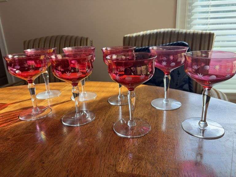 LOT 226 - A Must! Etched Vintage Cranberry Red Wine Glasses
