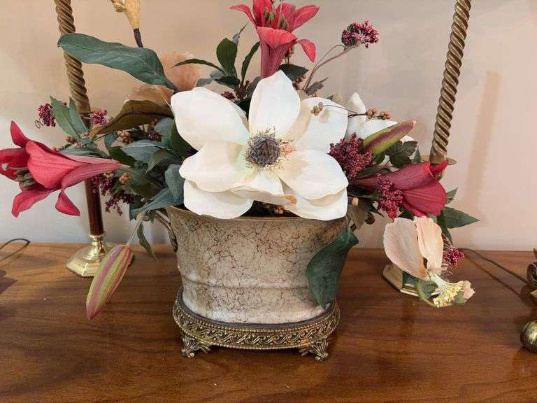 Gorgeous planter with floral arrangement. 8” x 6” x 7”
