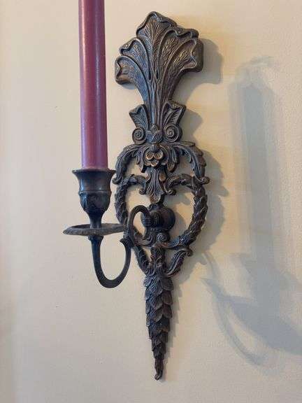 LOT 255 - Pretty Victorian Style Brass Wall Sconce Candle Holders