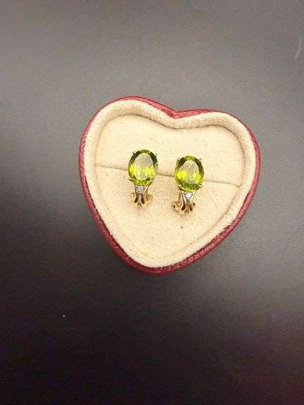 LOT 290 - 14KT Gold and Peridot Diamond Earrings