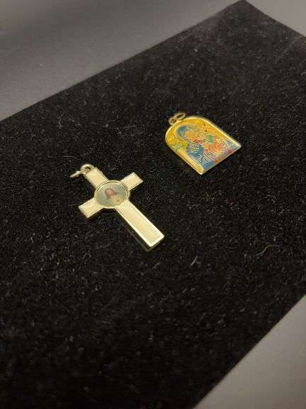 LOT 293 - Gold Tone “Our Lady” and “Sacred Heart” Pendants