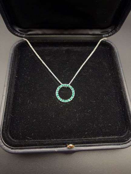 LOT 296 - Silver Emerald Birthstone Circle Necklace