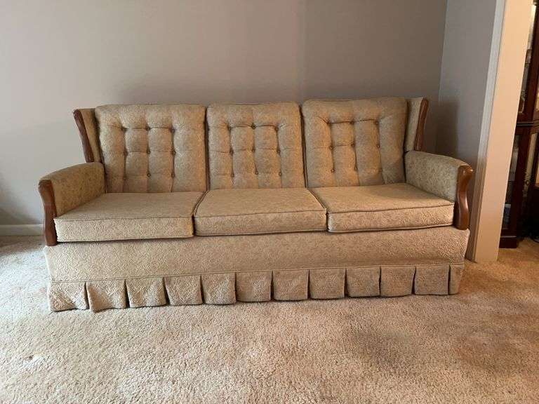 LOT 25DEN - Very nice vintage beige tufted back sofa by H & C Table Company, Somerville, TN…..74 x 21 x 33 tall overall