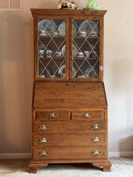 LOT 26DEN - Beautiful Ethan Allen Georgian Solid Birch Drop Front Secretary Desk With Bookcase Hutch…..34-1/2 x 18-1/2 x 76 tall