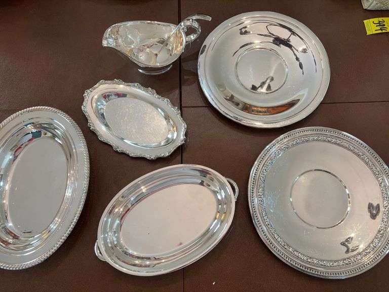 LOT 370 - Wallace SP Plate, Reed & Barton Silver Tray, Silver Bowls, Gravy Bowl and Gerity Silver Laddle