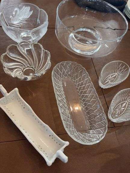 LOT 371 - Princess House Crystal Spoon Holders, Porcelain Cradle, Decor Glass Bowl, Crystal and Glass Bowls