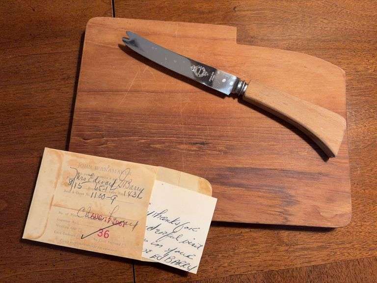 LOT 440 - Really Neat English Galatix Hand Made Burma Teak Wooden Cutting Board and Knife