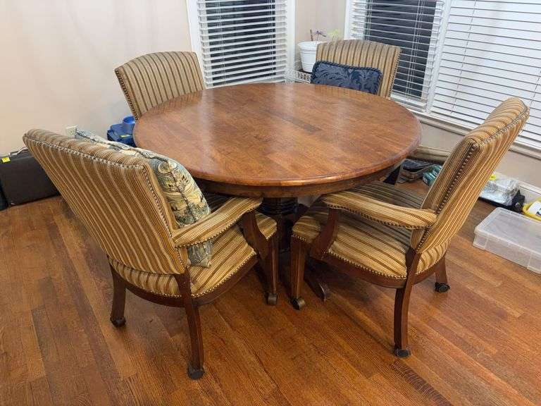 LOT 459 - Round Wooden 5 Seat Table and Rolling Arm Chairs