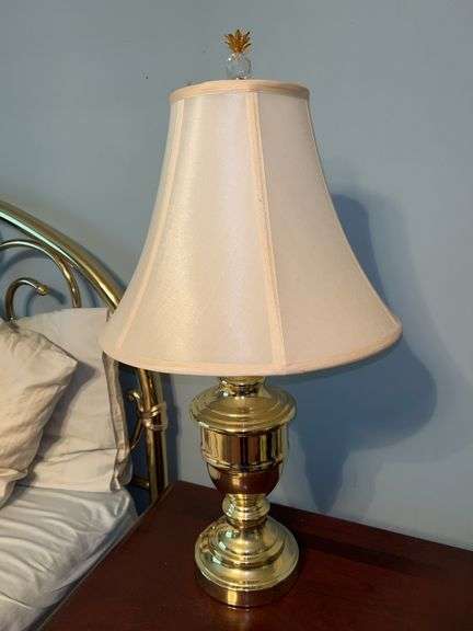 LOT 75UPa - Very nice gold tone base lamp with nice silk-like shade and prism pineapple finial….24-1/2” tall