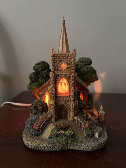 LOT 83UPa - Thomas Kinkade Lamplight Hawthorne Village Collection “Windermer Church” lighted cottage…..7 x 5-1/2” tall…..working condition…..sculpture A4101