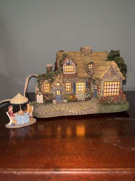LOT 84UPa - Thomas Kinkade Lamplight Hawthorne Village Collection “Lamplight Yea Room” lighted cottage…..7 x 5-1/2” tall…..working condition…..sculpture A6212