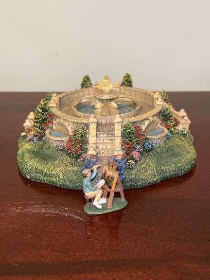 LOT 86UPa - Thomas Kinkade Lamplight Hawthorne Village Collection “Lamplight Fountain” decor….6-1/2 x 2-1/2” tall…..sculpture A3044