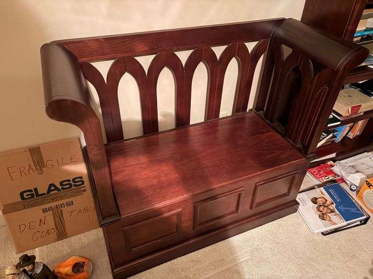 LOT 474 - Pretty Pier 1 Imports Storage High Back Bench