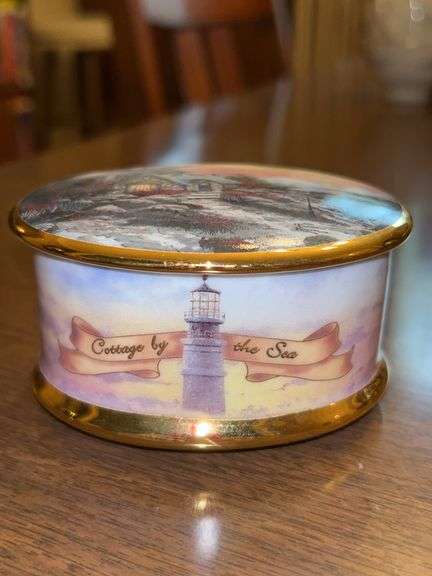 LOT 166KIT - Thomas Kinkade “Cottage By The Sea” porcelain music box…..7th issue in the Thomas Kinkade’s Guiding Lights Music Box Collection…..#850A with COA