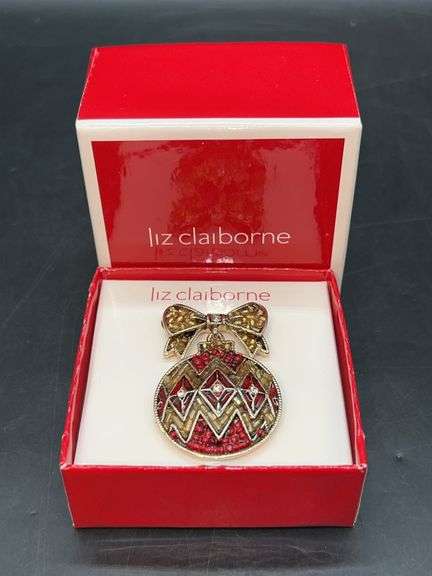 LOT 351J - Beautiful Liz Claiborne Ornament and Bow Brooch in original box
