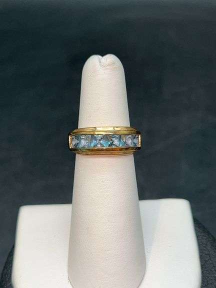 LOT 356J - Gold tone over sterling ring with square topaz-like stones…..size 5….4 grams