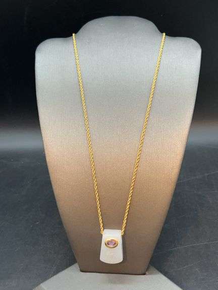 LOT 367J - Amethyst Green Jadeite Jade Good Luck Pendant Necklace…..necklace is gold tone costume jewelry