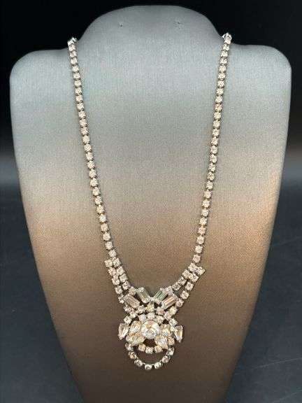 LOT 372J - Vintage Mid-Century Rhinestone Necklace - Art Deco Style - 1950s…..perfect for the upcoming holidays
