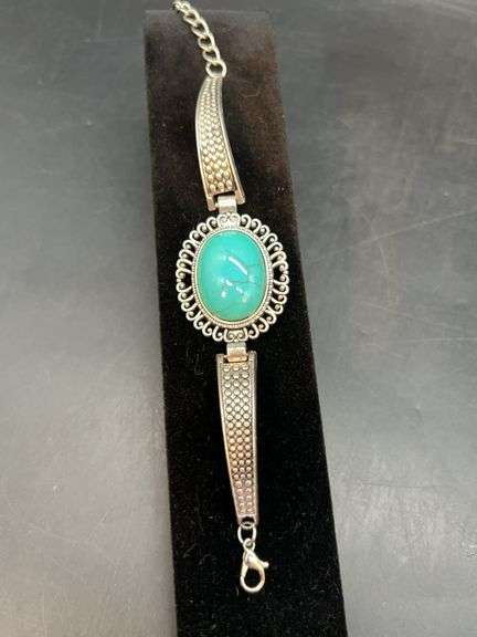 LOT 374J - Vintage Silver Tone Faux Turquois Bracelet