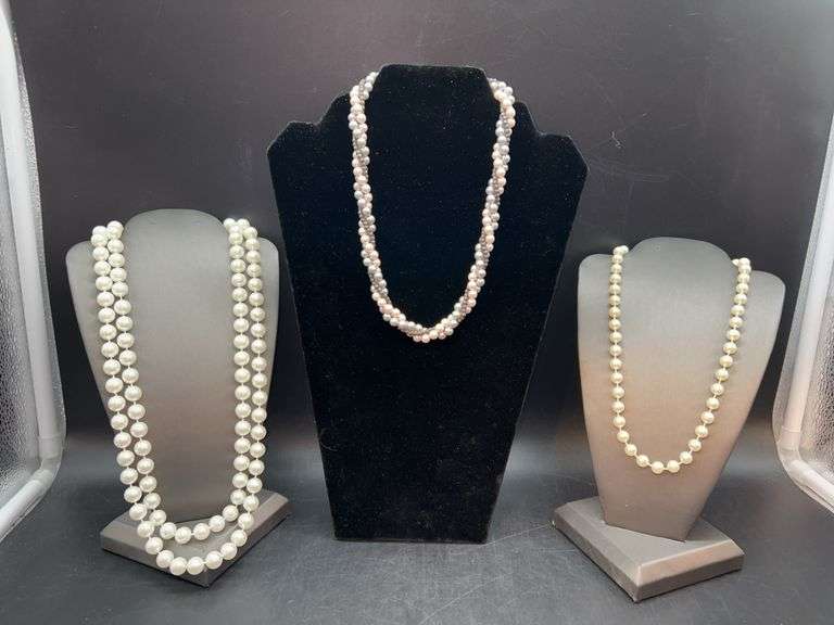 LOT 382J - Grouping of (3) pearl-like necklaces