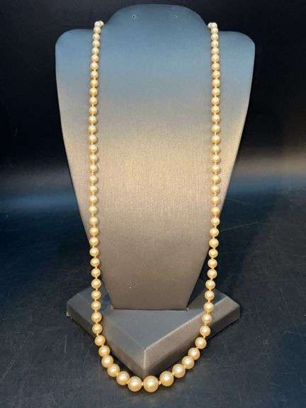 LOT 383J - Beautiful vintage strand of pearls with clear stone clasp