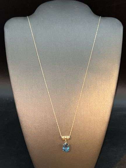 LOT 388J - 14K yellow gold delicate chain with 14K yellow gold London Blue Topaz Stoneā¦..