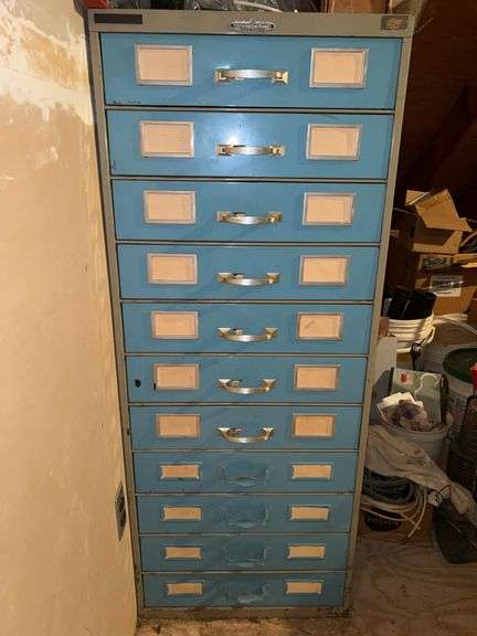 LOT 309ATTICb - Remington Rand Aristocrat 11-drawer shop cabinet and contents…..BUYER IS SOLELY RESPONSIBLE FOR REMOVAL FROM UPSTAIRS ATTIC