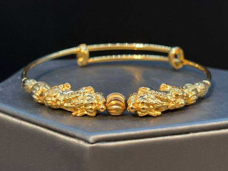 LOT 389J - Double Pixiu Gold-Tone Wealth Bangle from the Buddha Power Store